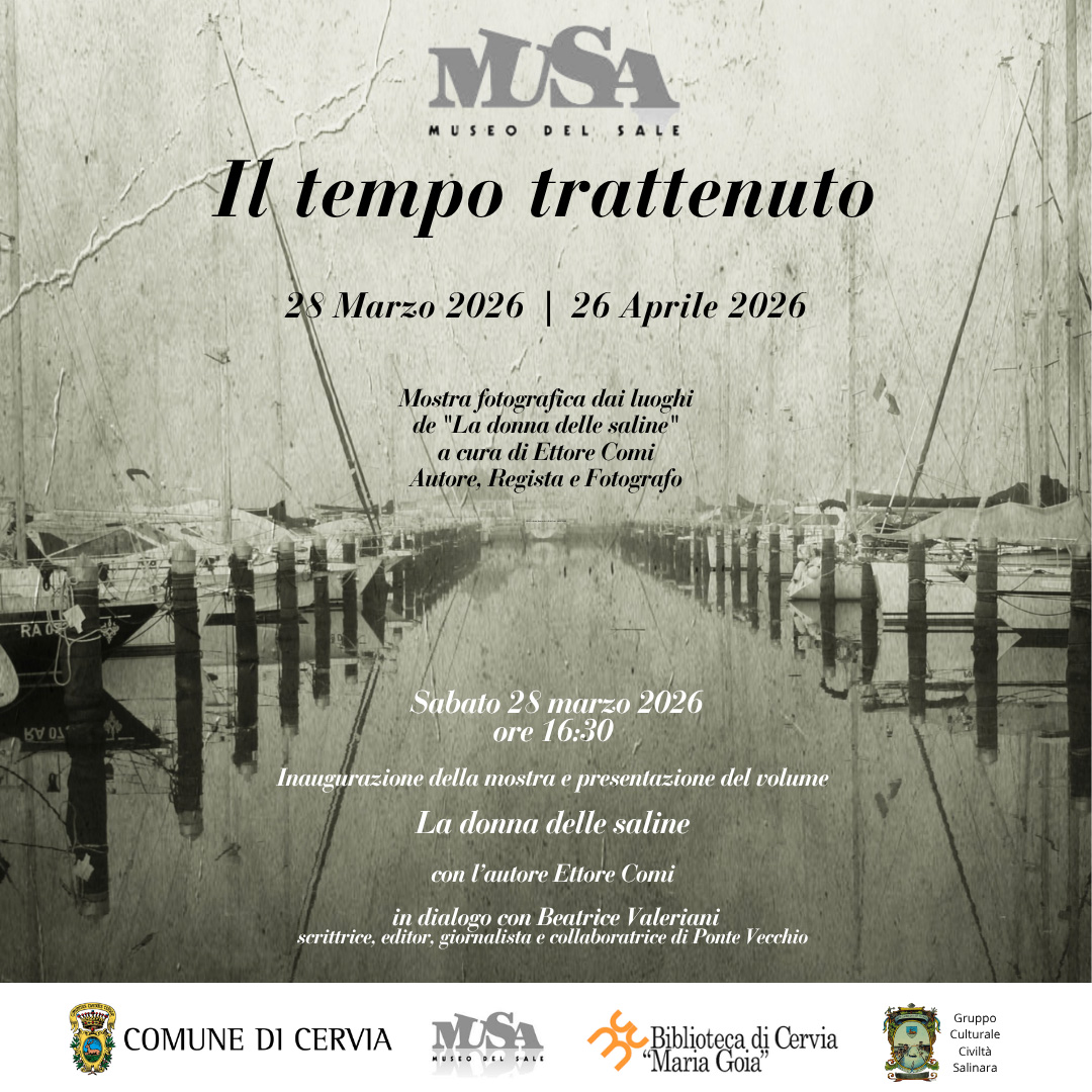 Il MUSA – Museo del Sale di Cervia, insieme alla Biblioteca comunale “Maria Goia” e al Gruppo Culturale Civiltà Salinara, presenta la mostra fotografica “Il tempo trattenuto. Fotografie dai luoghi di La donna delle saline” di Ettore Comi.